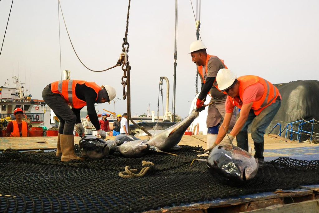 Bajo las políticas de sustitución de importaciones, el proyecto nacional establece una meta clara: garantizar que al menos el 30% de las capturas de la flota industrial que opera en el OPO —estimadas entre 10.000 y 12.000 toneladas anuales— sean descargadas directamente en territorio nacional.